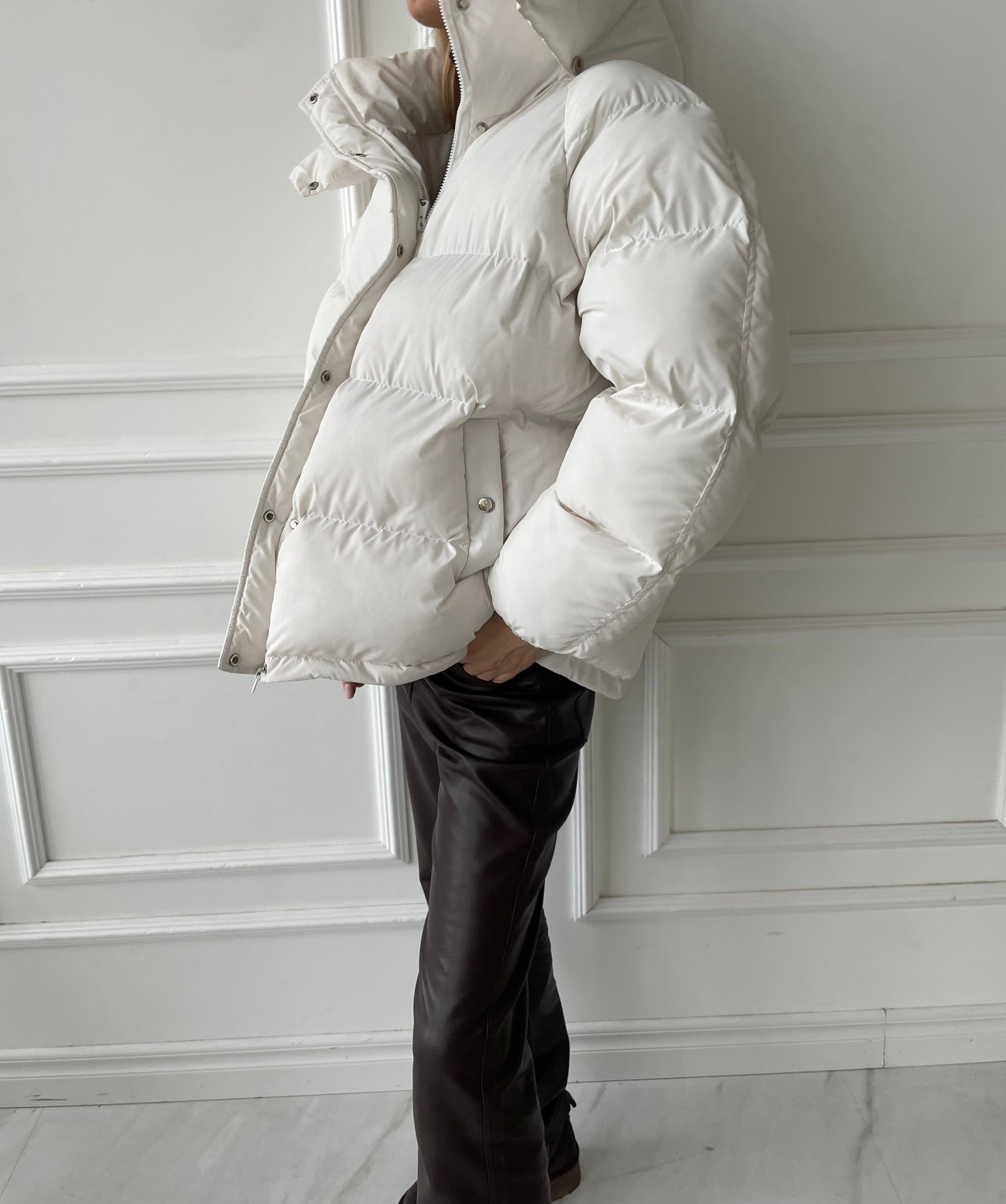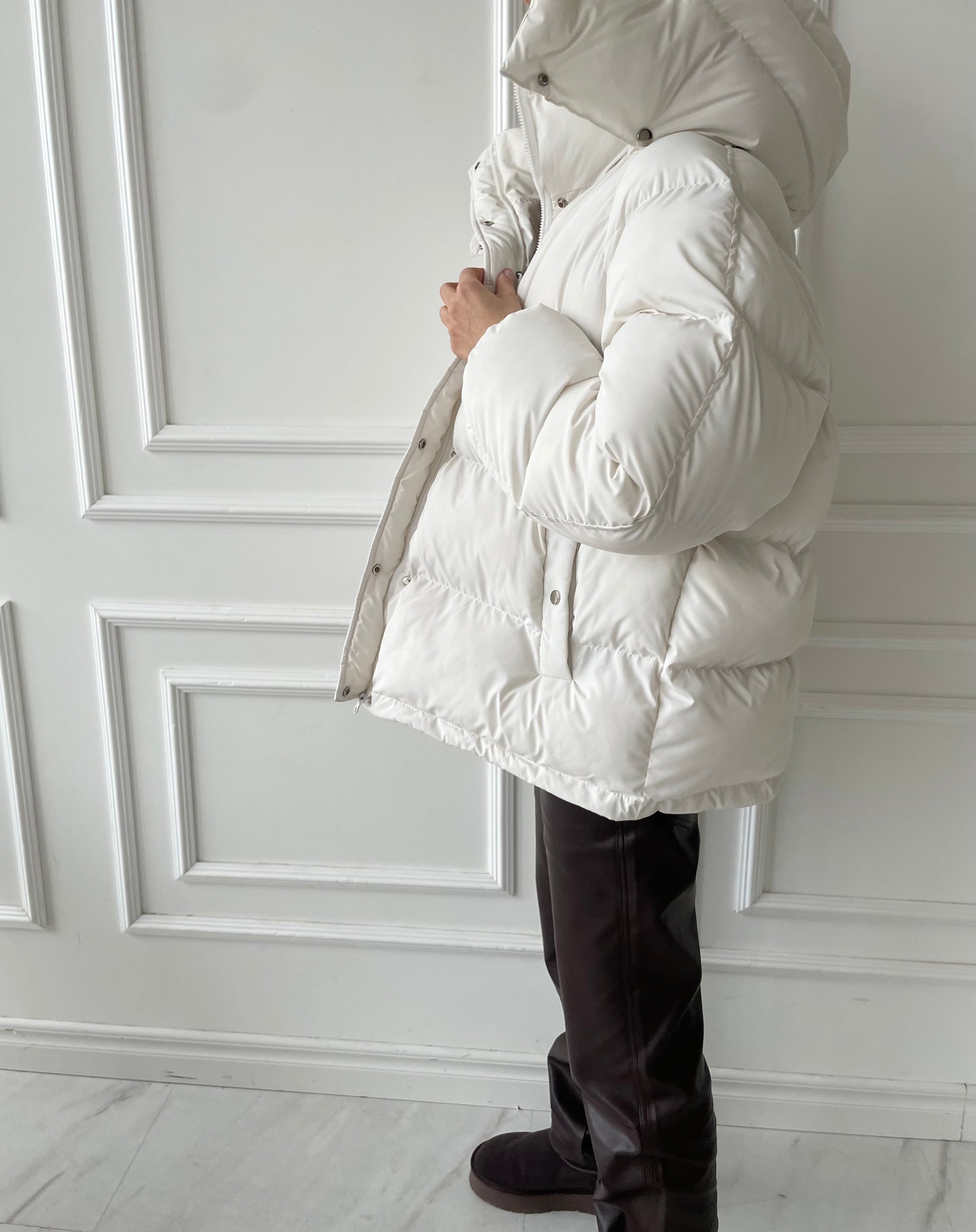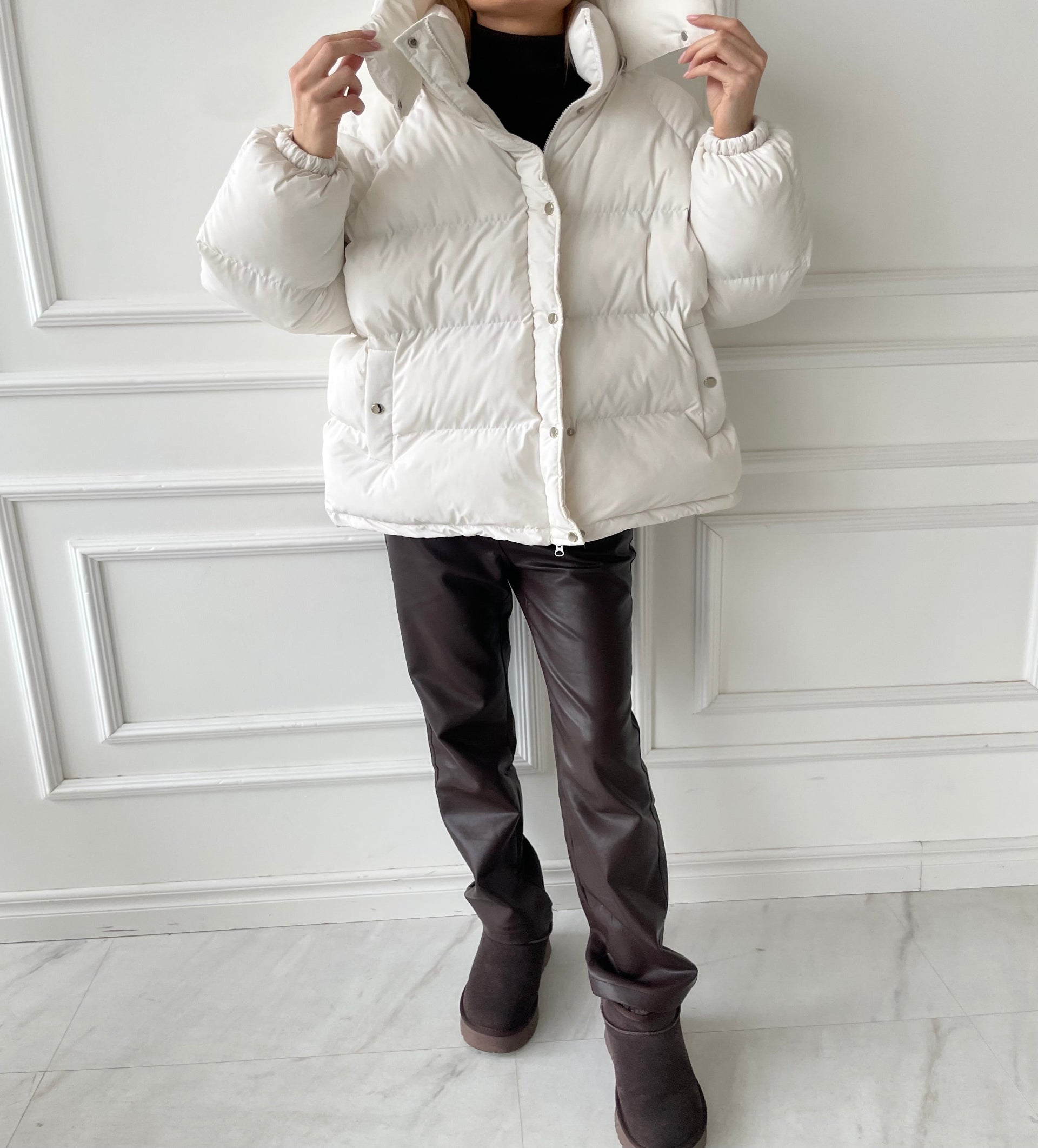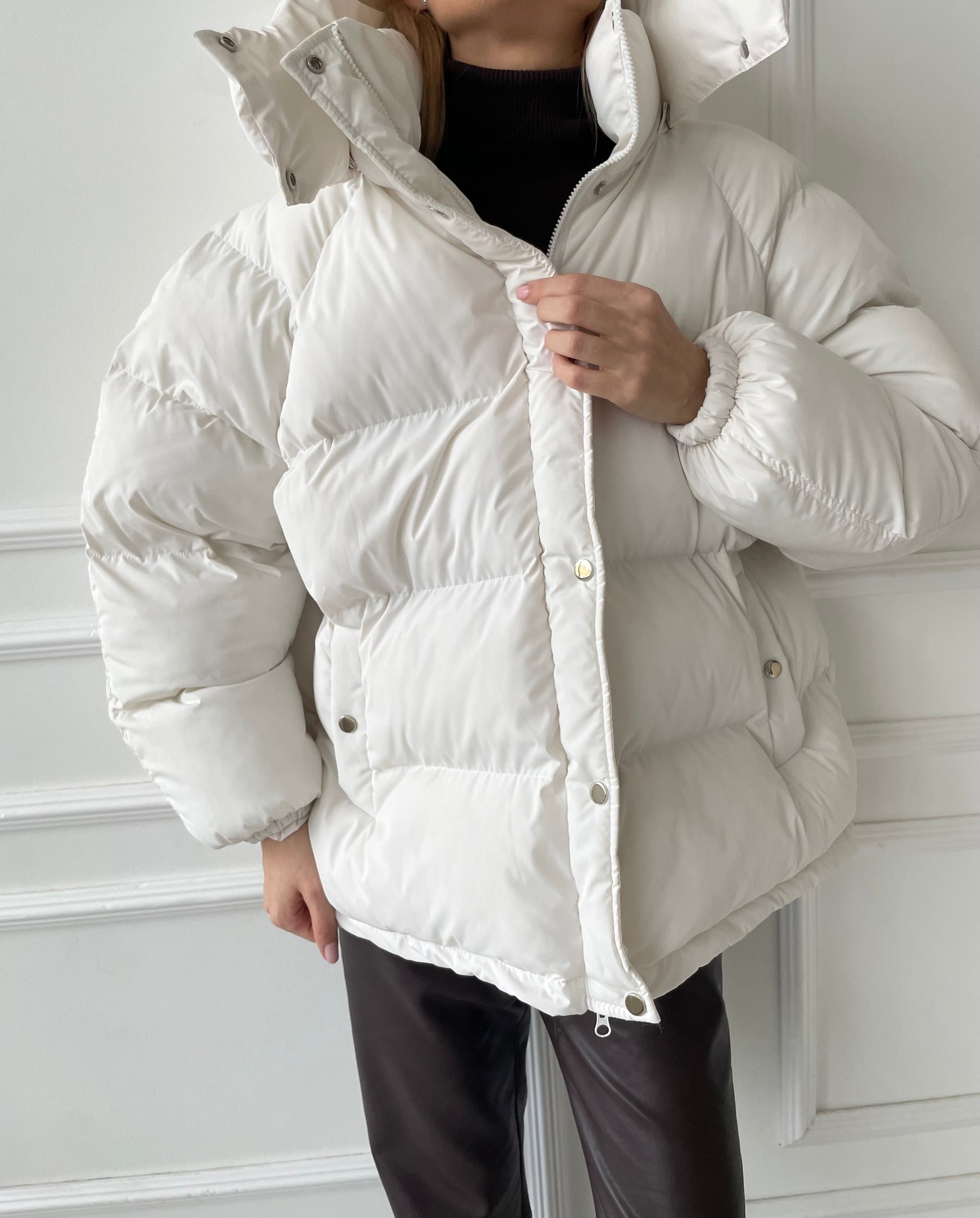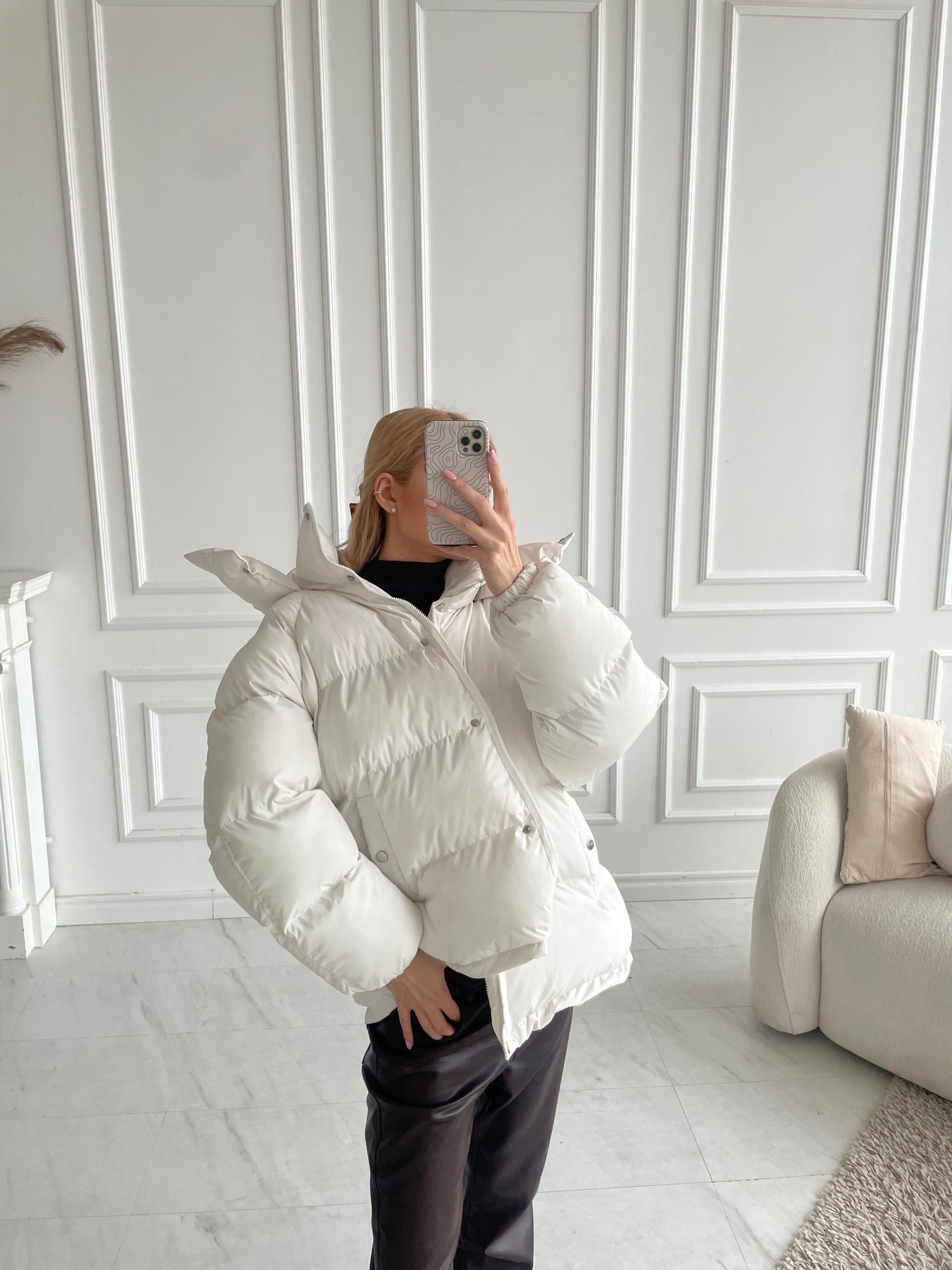 Balta pūkinė striukė