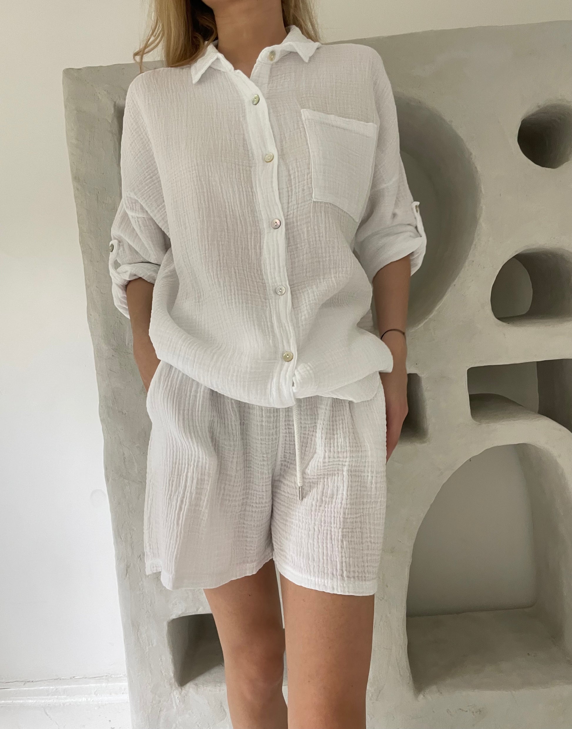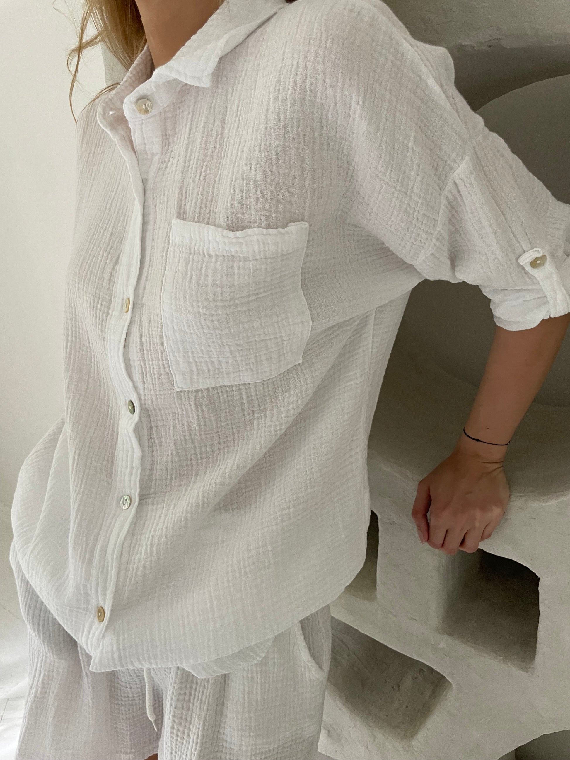 Baltas muslino kostiumas