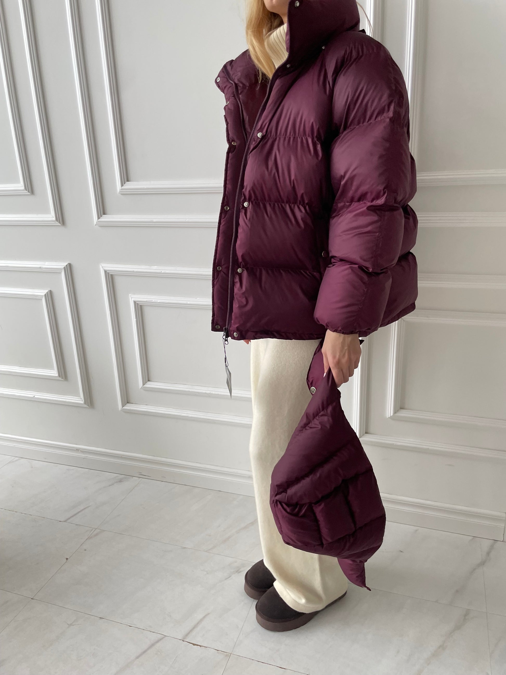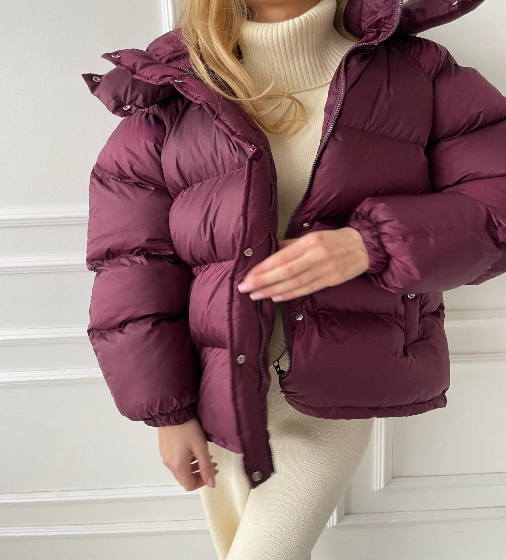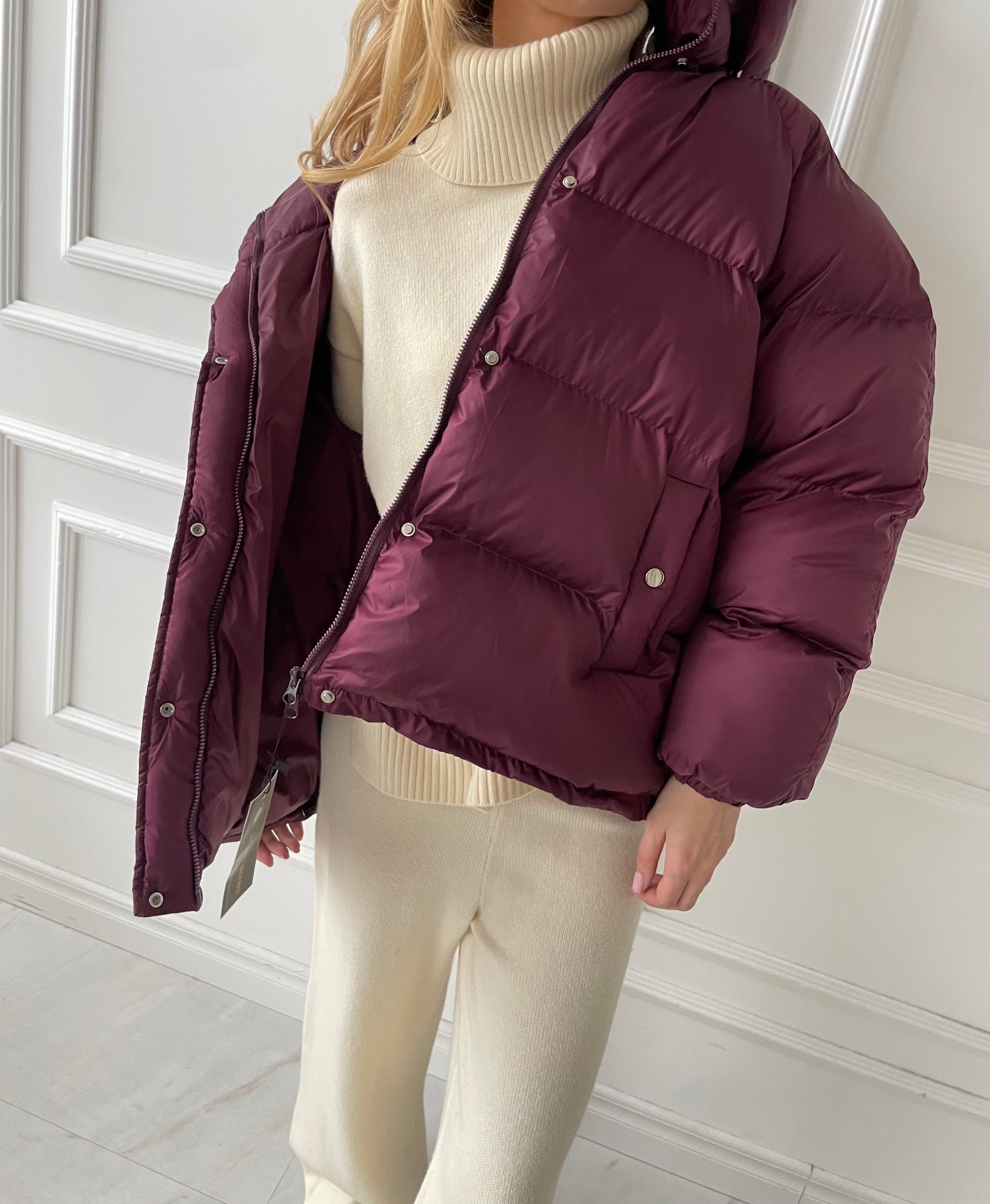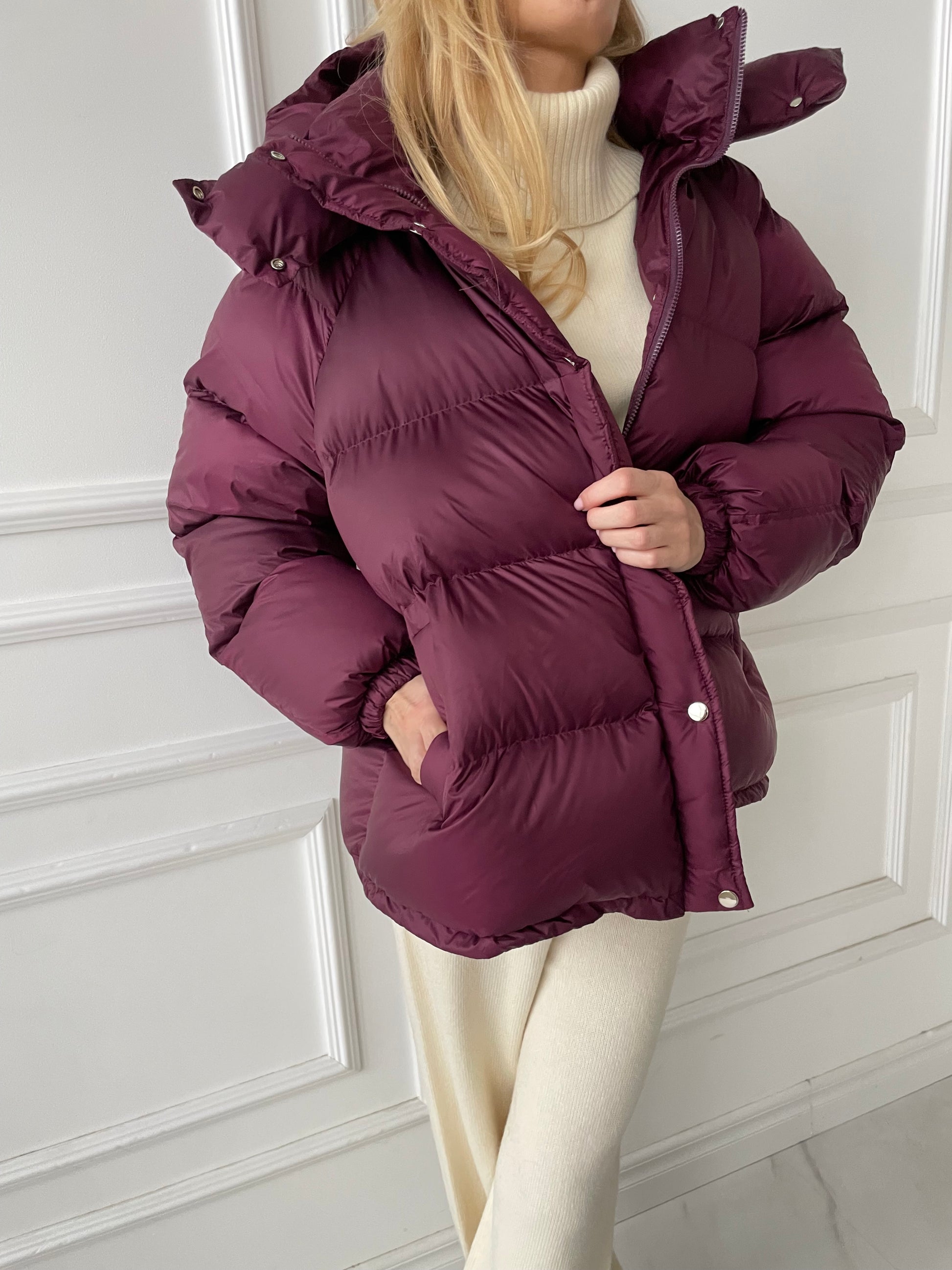 Bordo pūkinė striukė