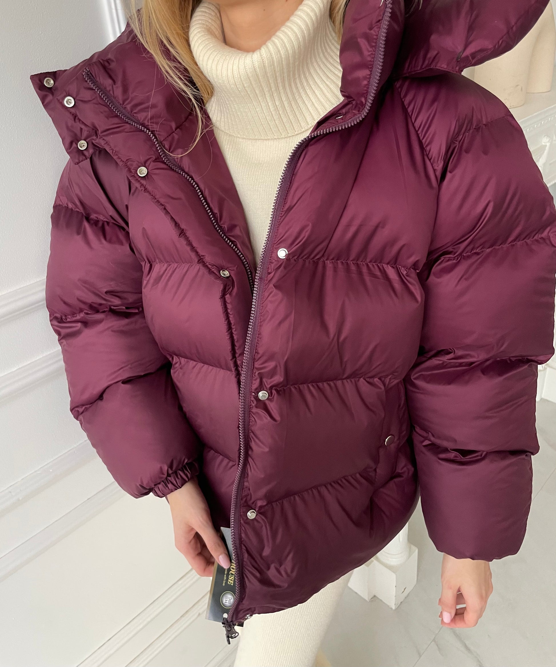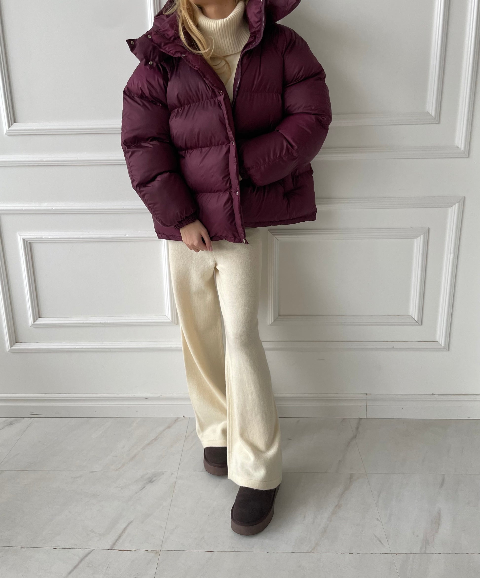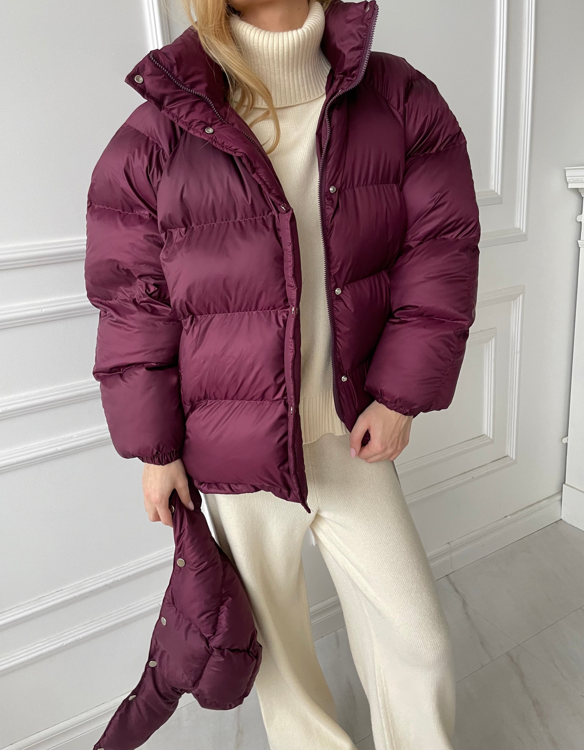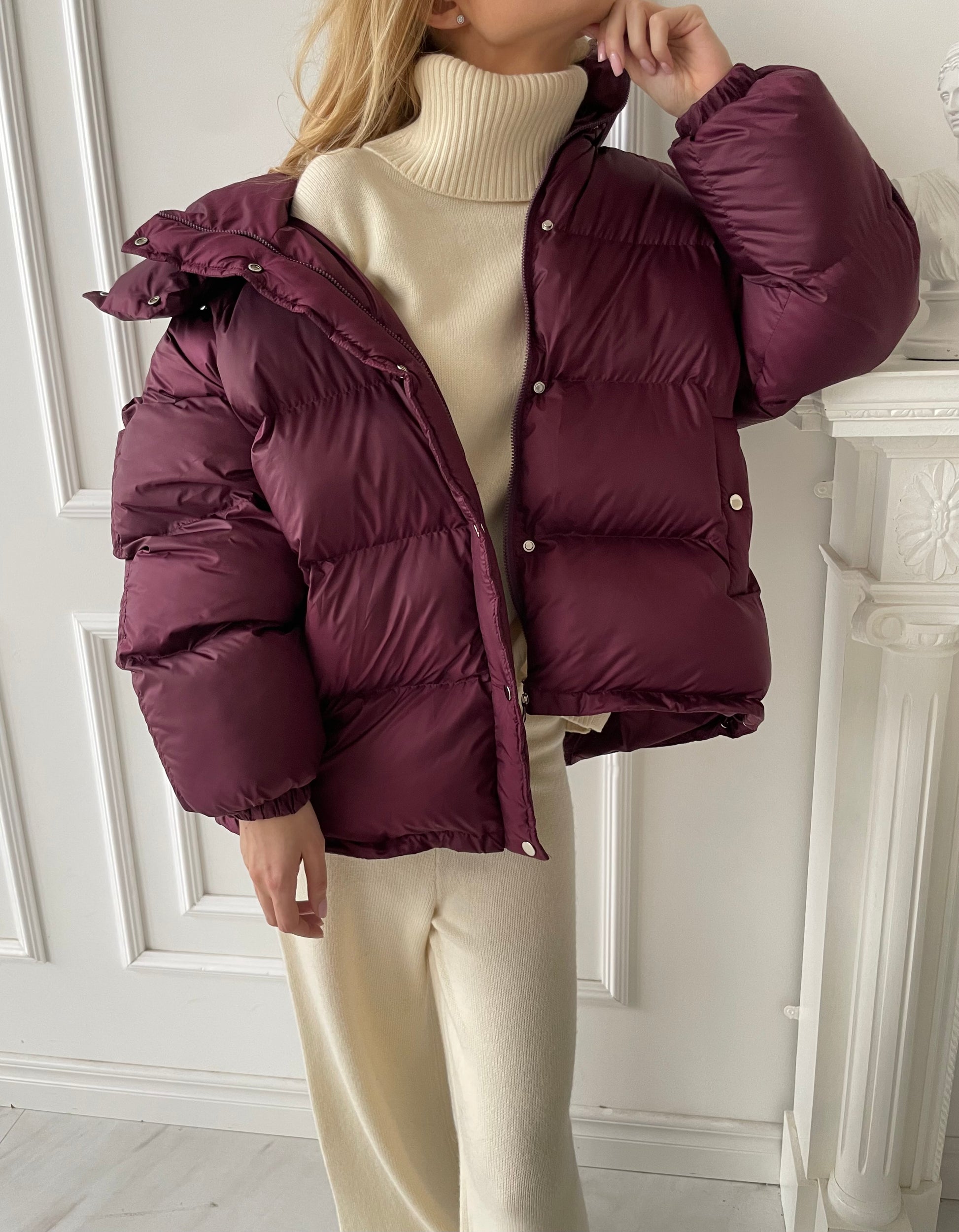 Bordo pūkinė striukė