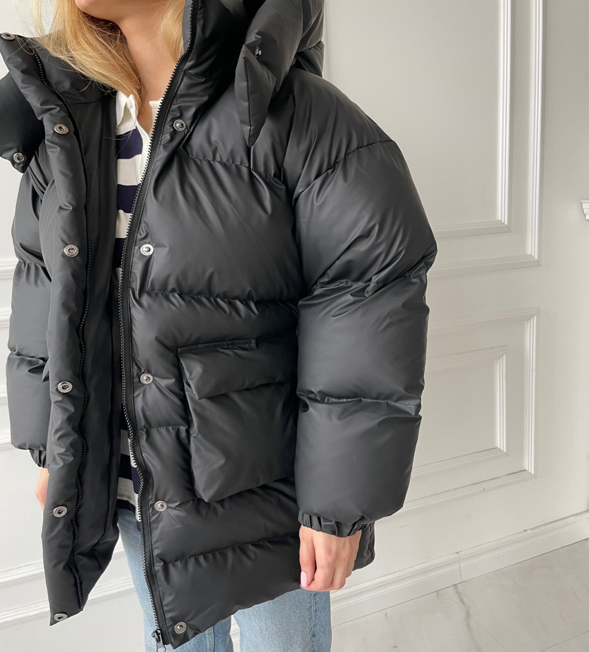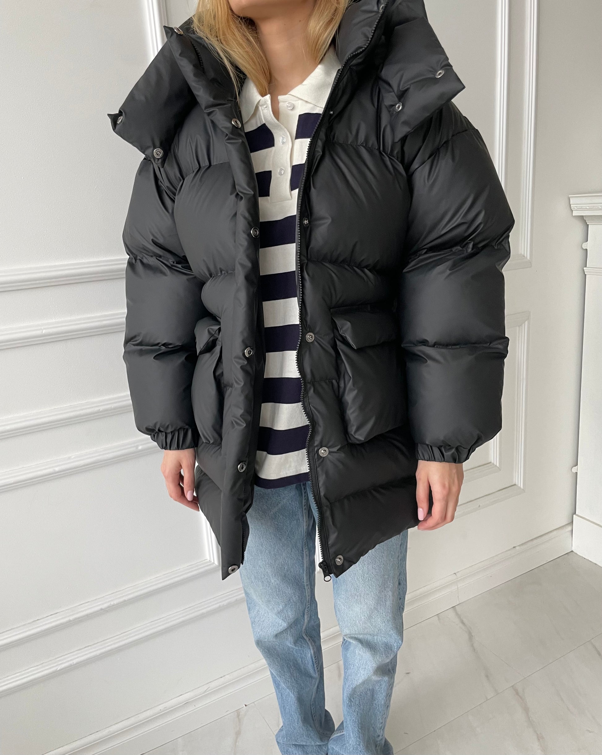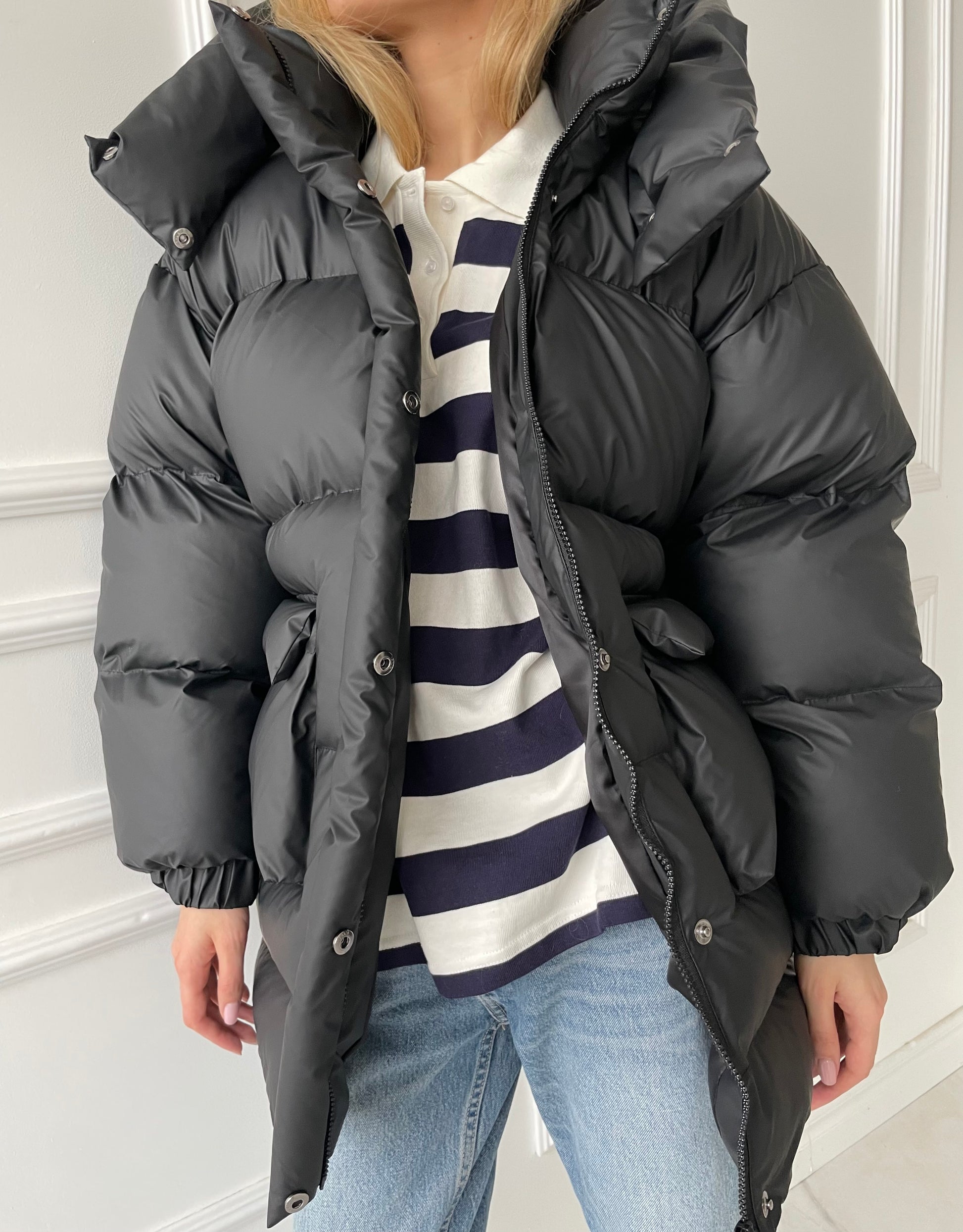 - Užpildas: eko pūkas su vandeniui ir vėjui atsparia medžiaga. Gobtuvas nusisega.