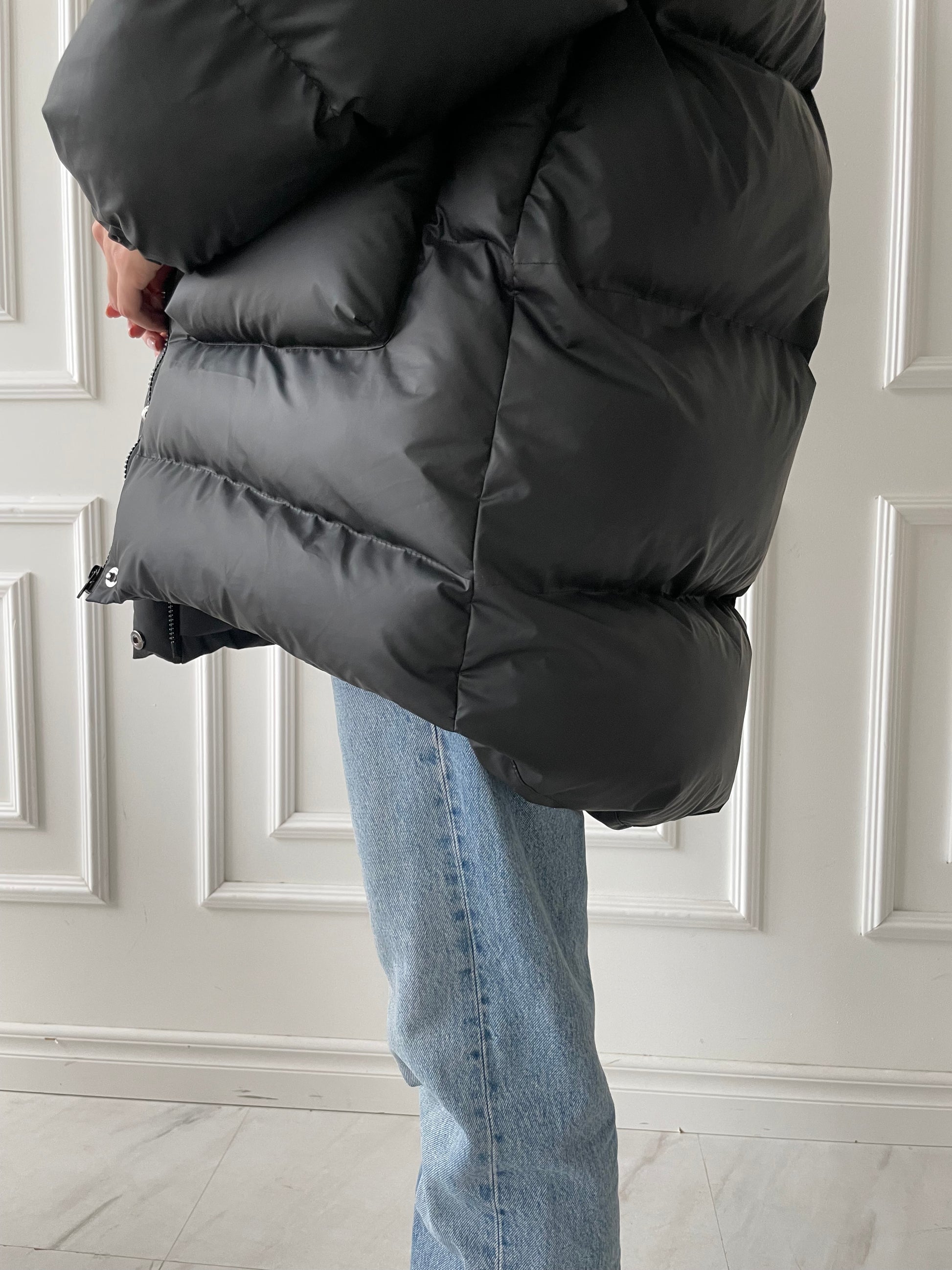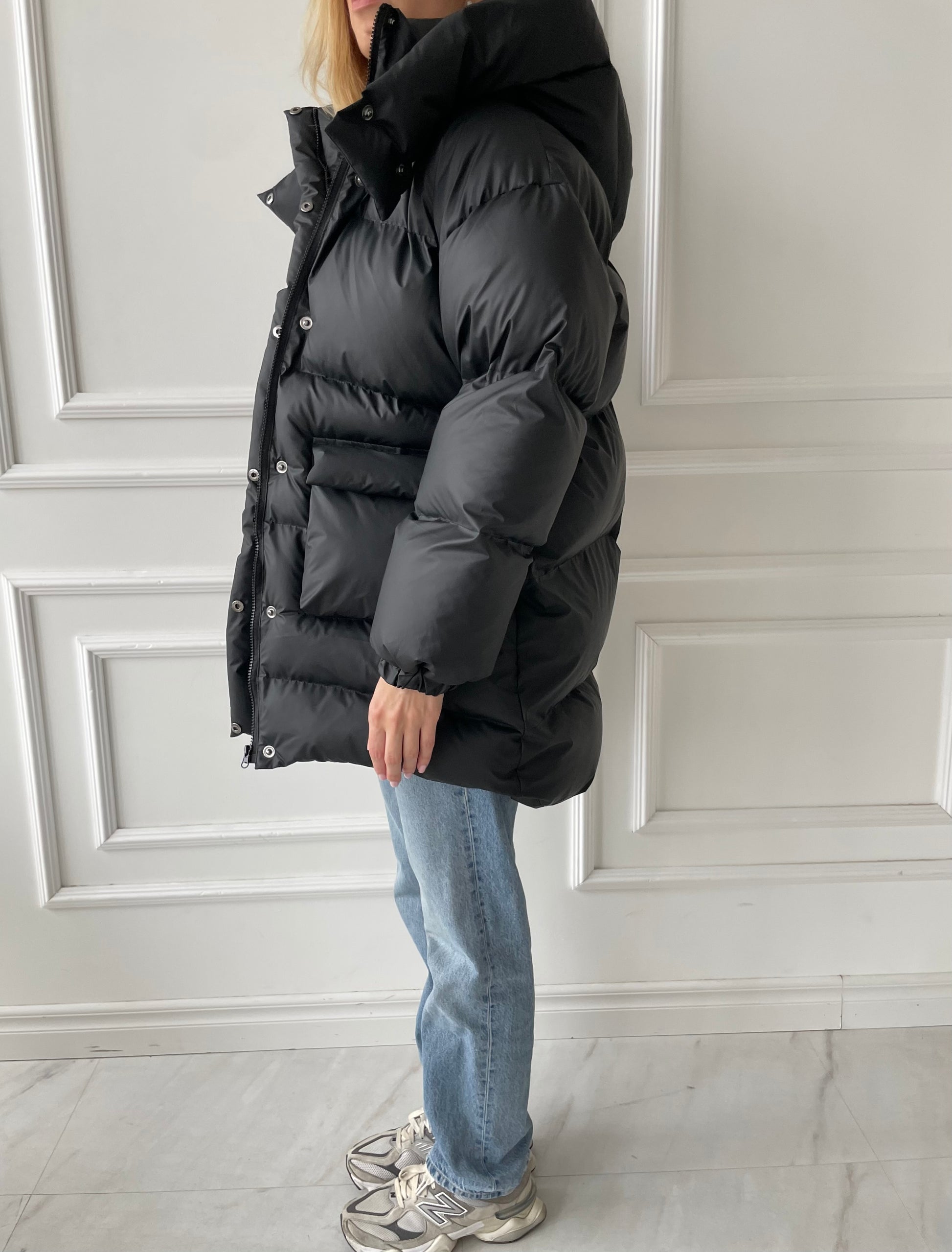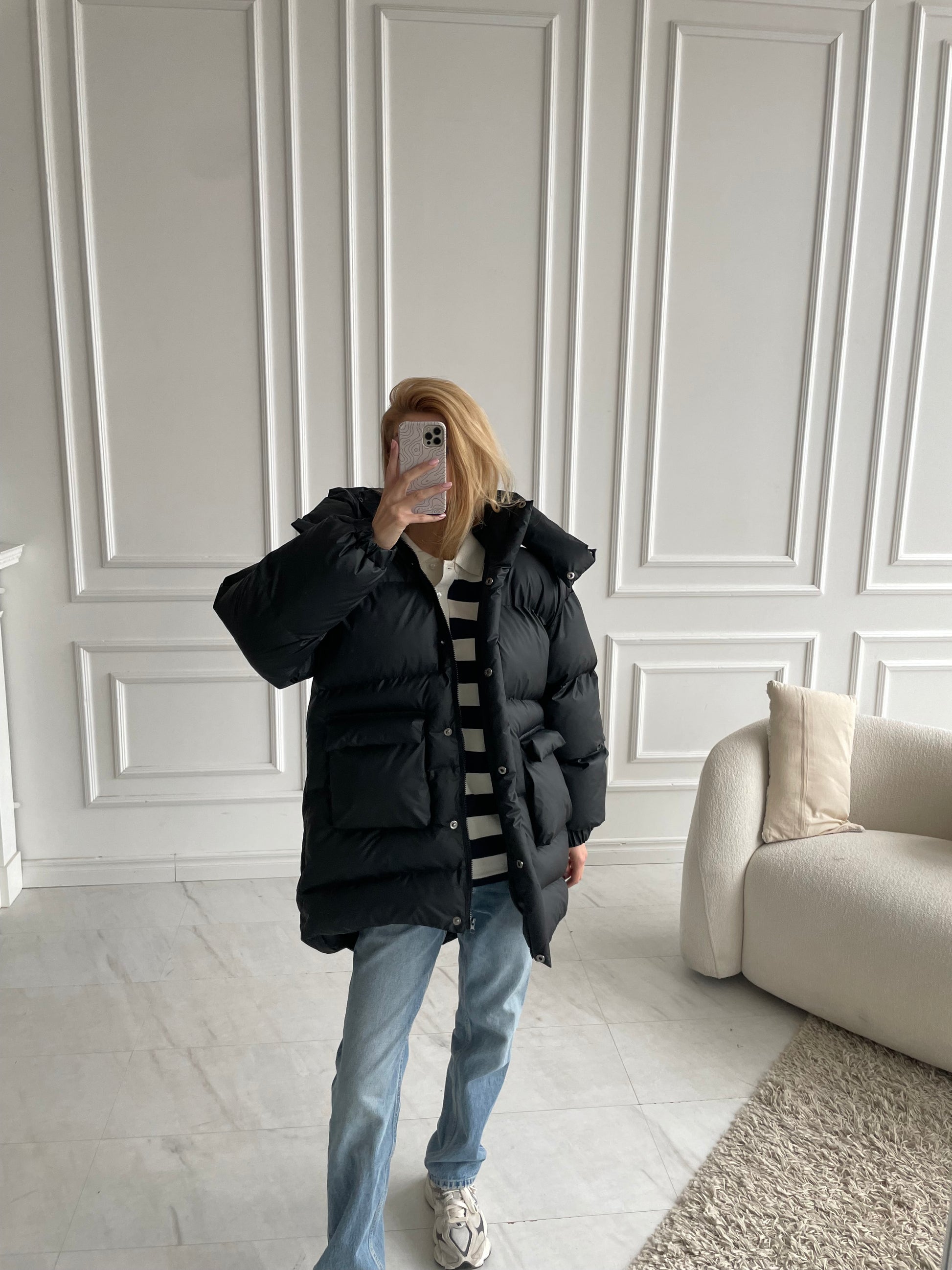 - Užpildas: eko pūkas su vandeniui ir vėjui atsparia medžiaga. Gobtuvas nusisega.