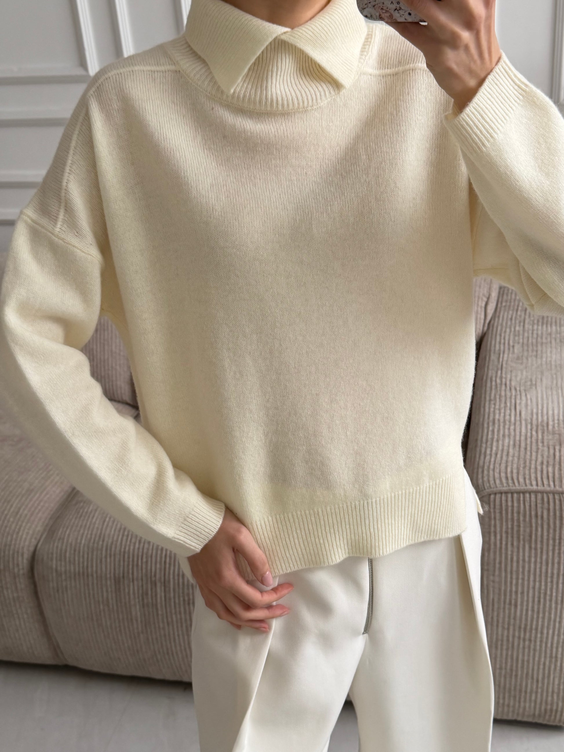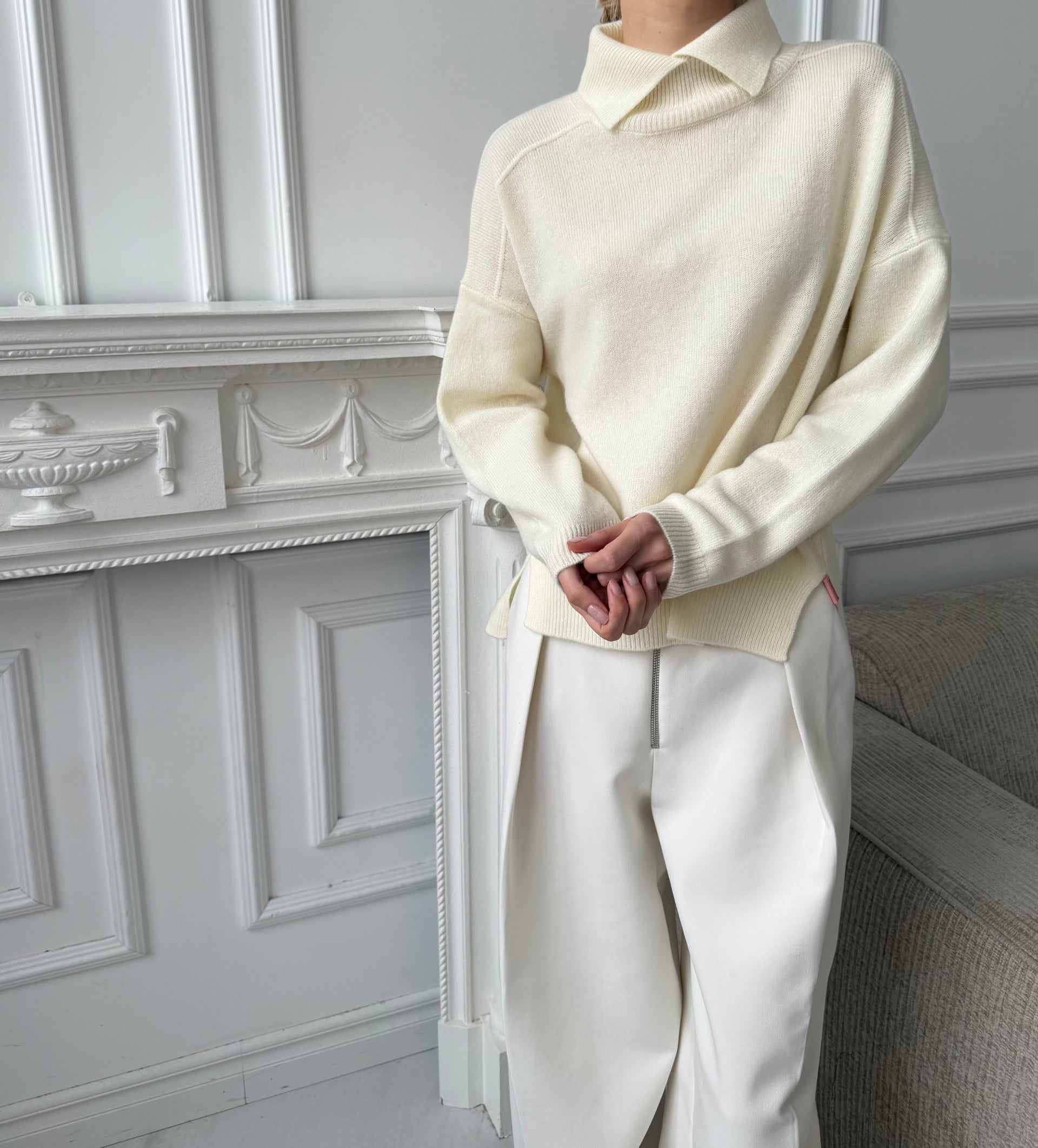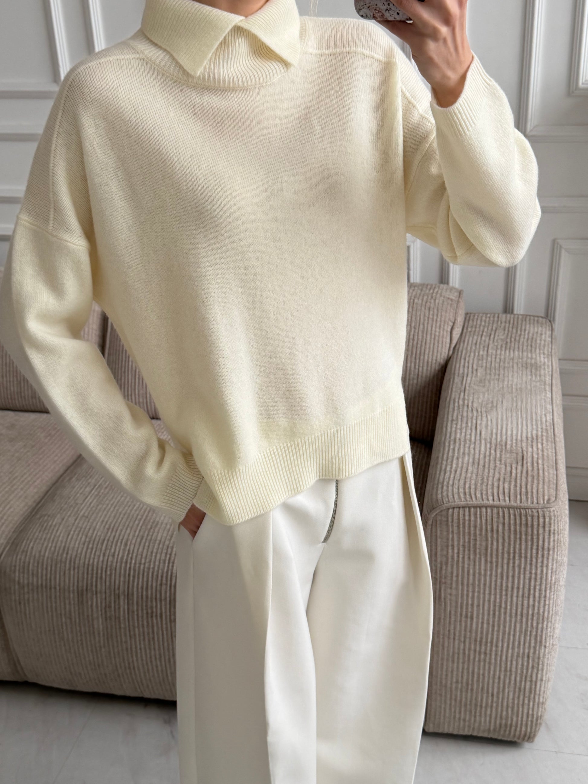 Kašmyro ir vilnos megztinis aukštu kaklu