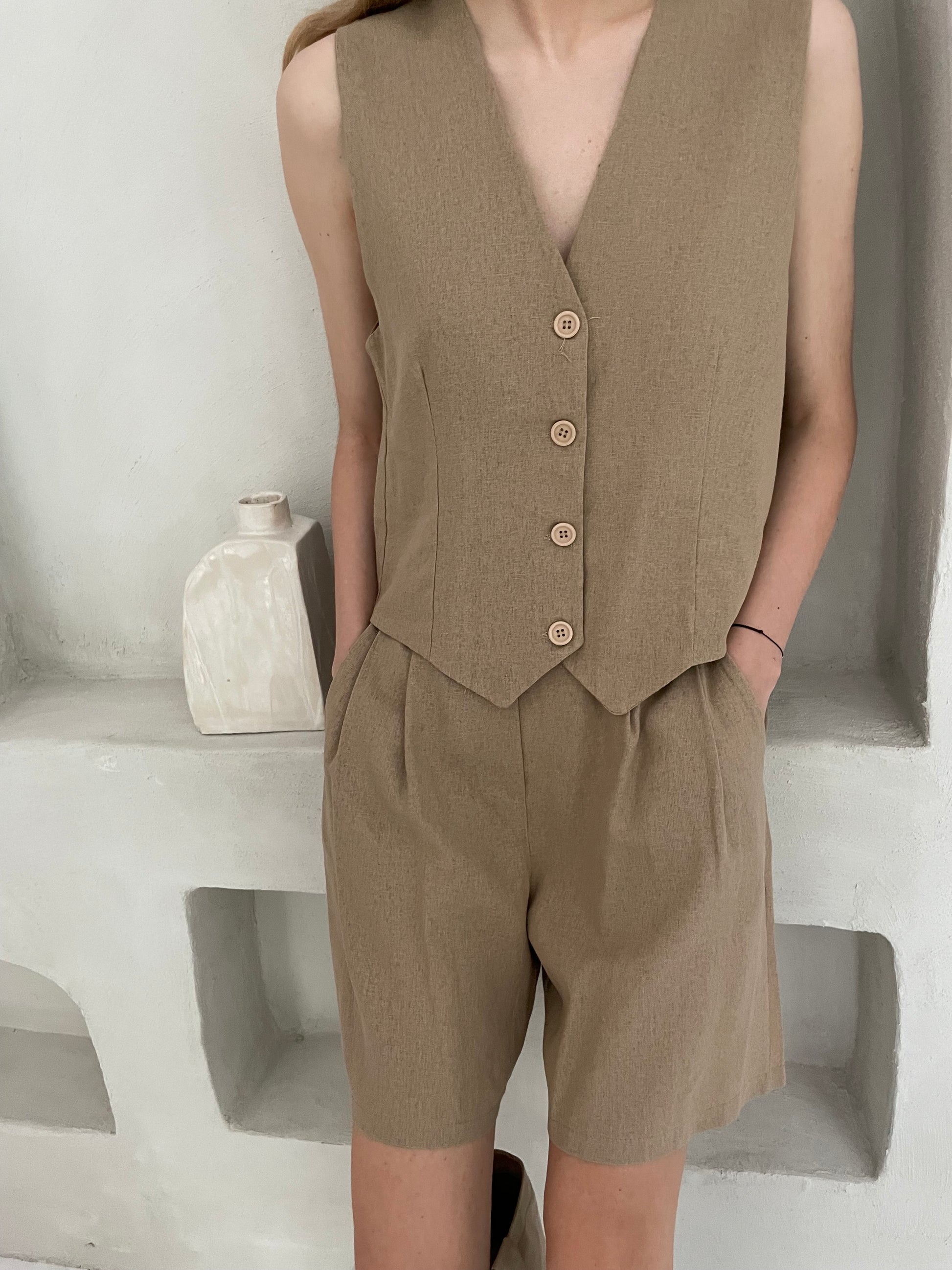 M - liemenės ilgis 50cm, plotis tarp pažastų 43cm. Šortų ilgis 44cm, liemuo ramybėje 34cm.