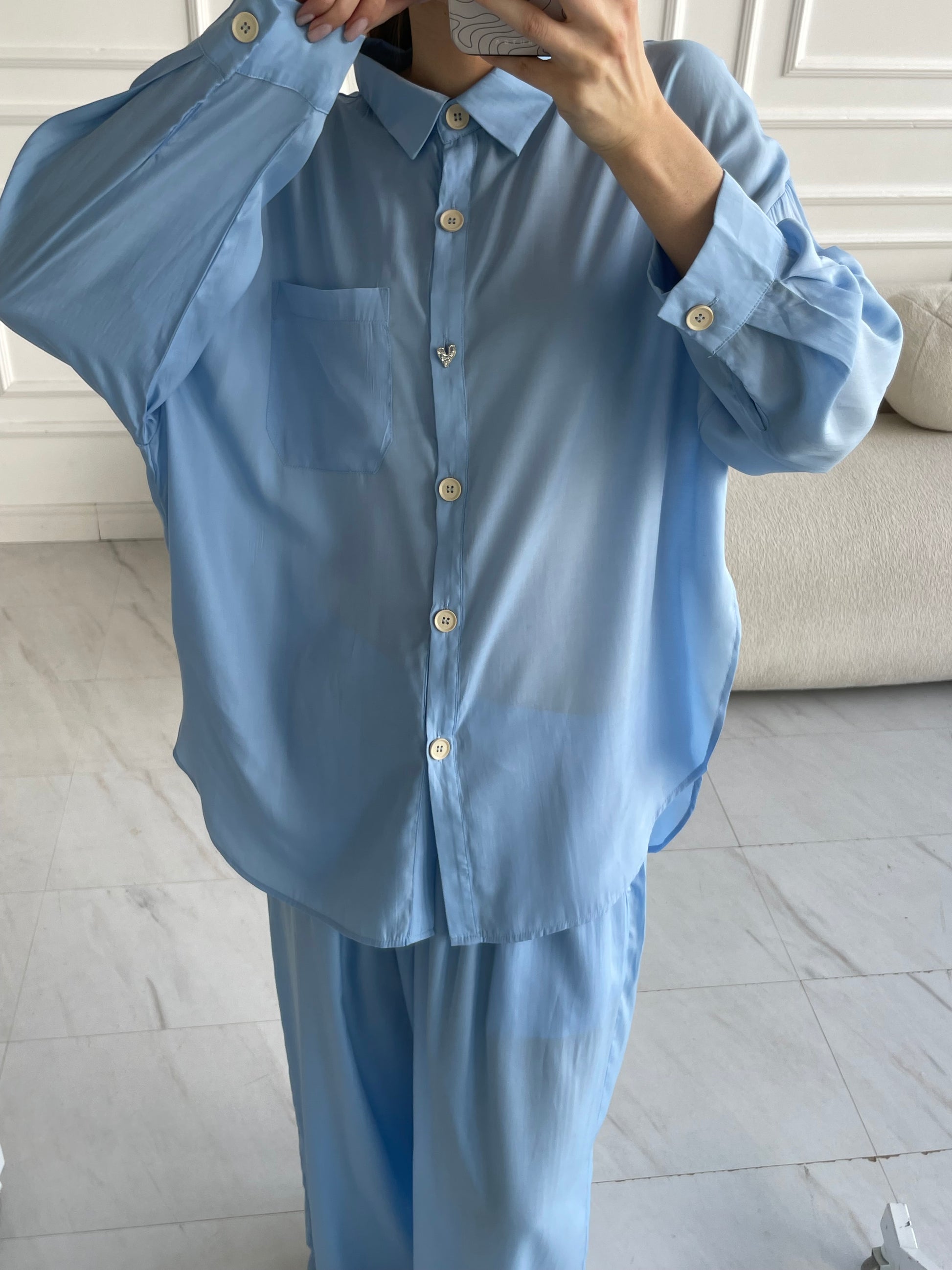 - Išmatavimai: marškinių ilgis priekyje 73cm, gale - 79cm, plotis tarp pažastų 62cm. Kelnių ilgis 104cm, juosmuo 35cm, tempiasi iki 47cm, klubai 71cm, tempiasi iki 80cm.