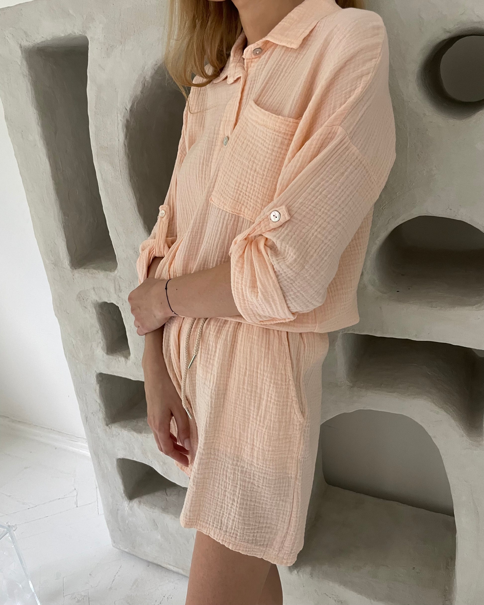 Persikinis muslino kostiumas