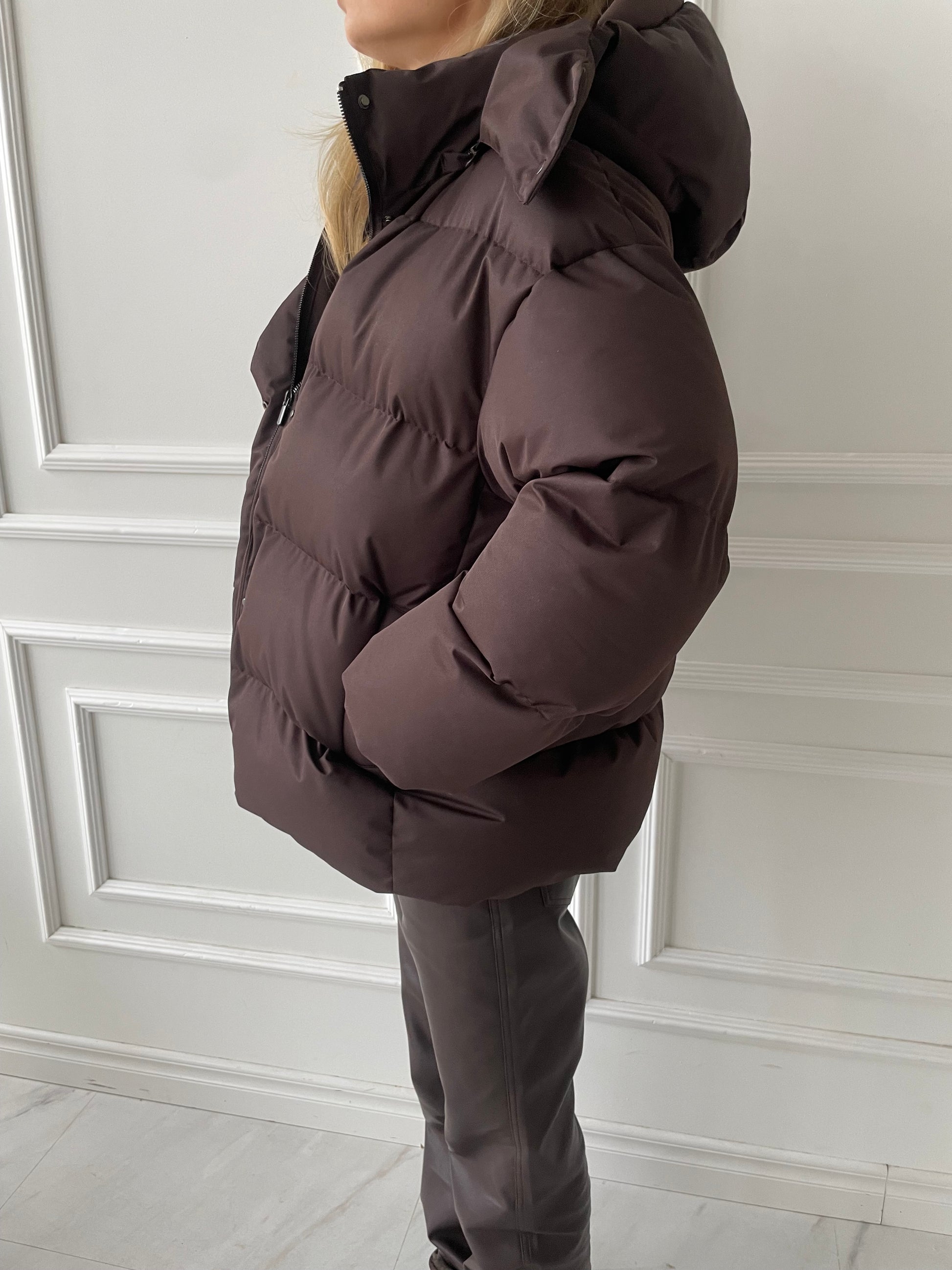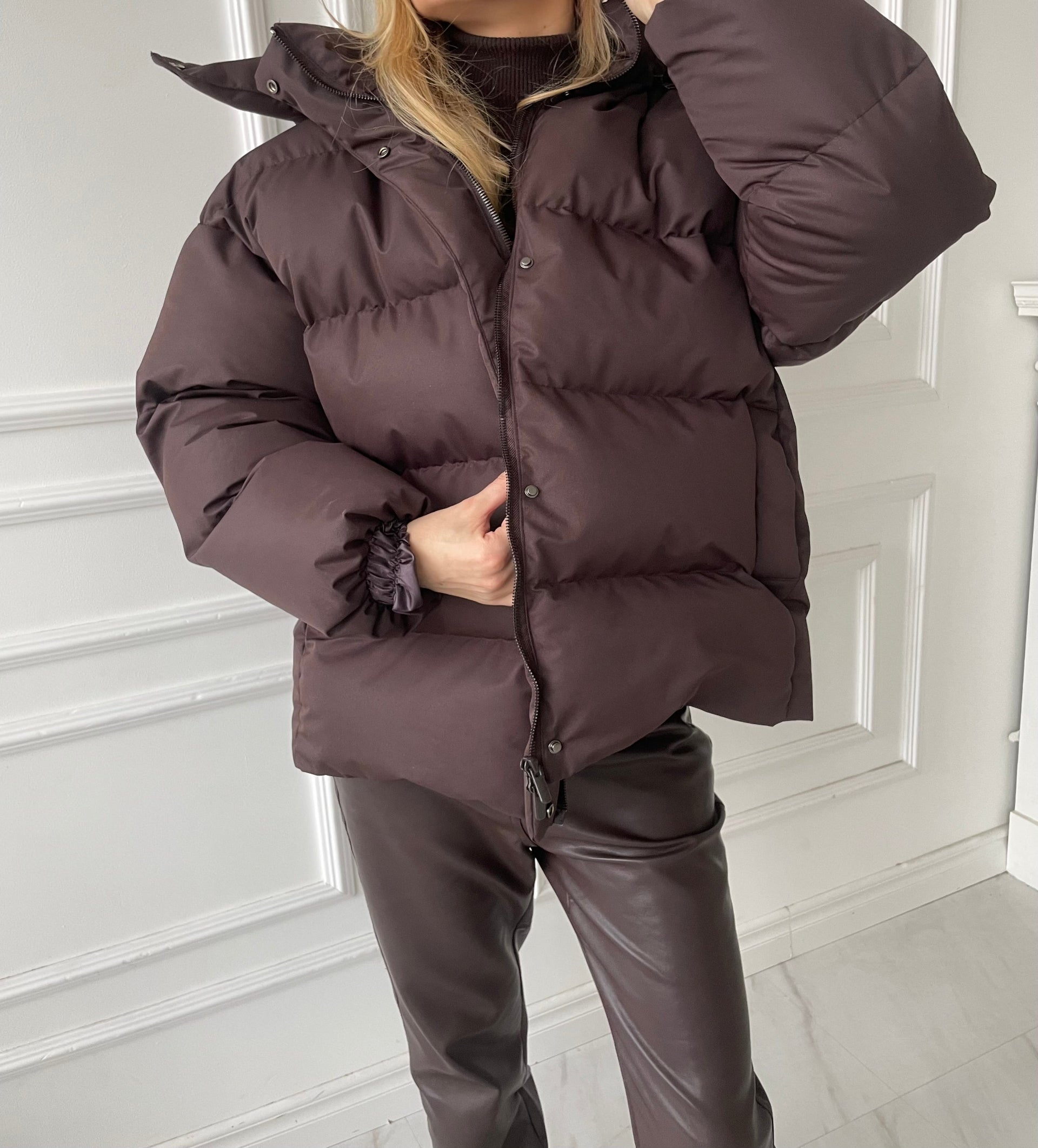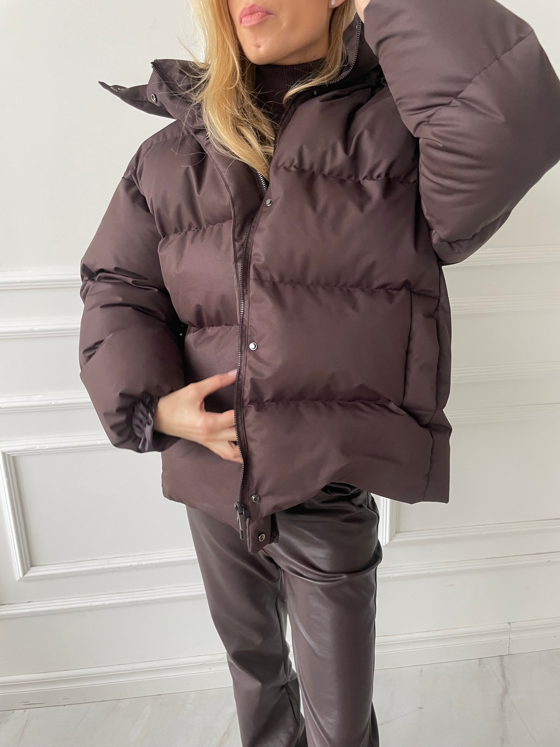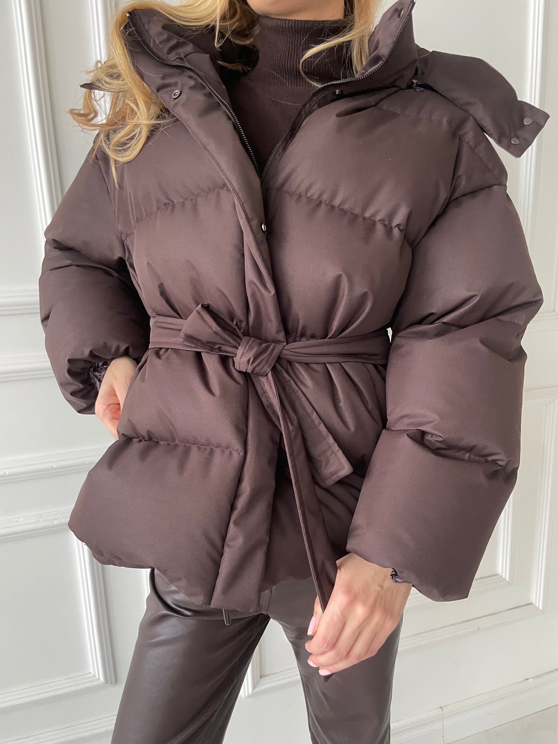 Pūkinė striukė su diržu