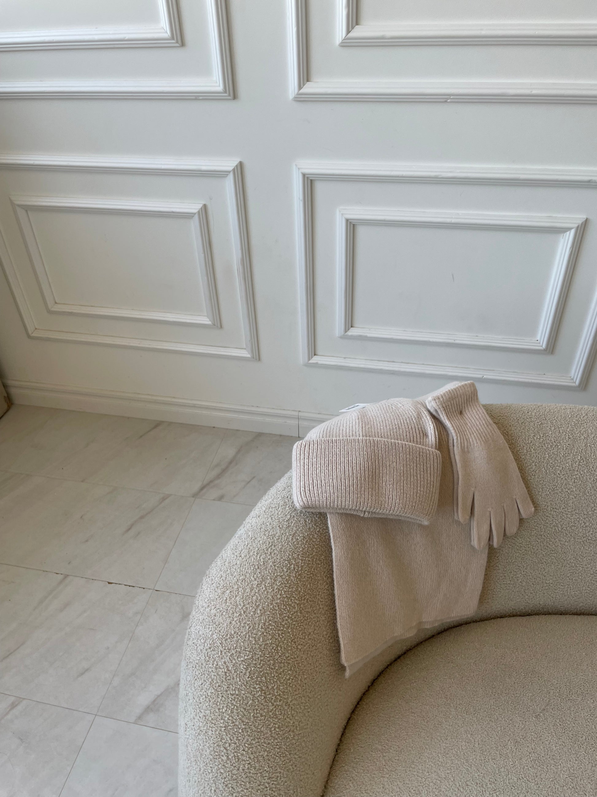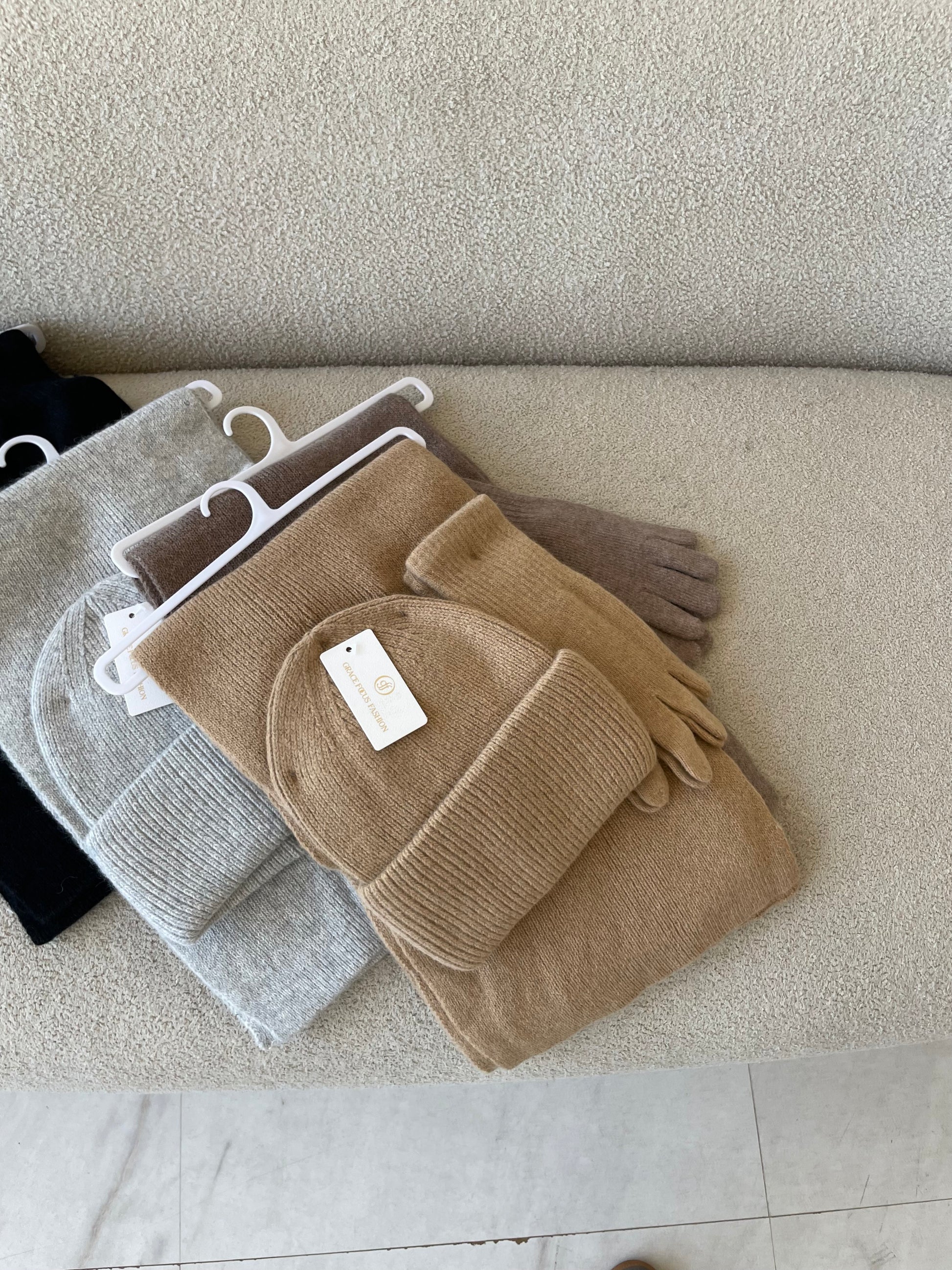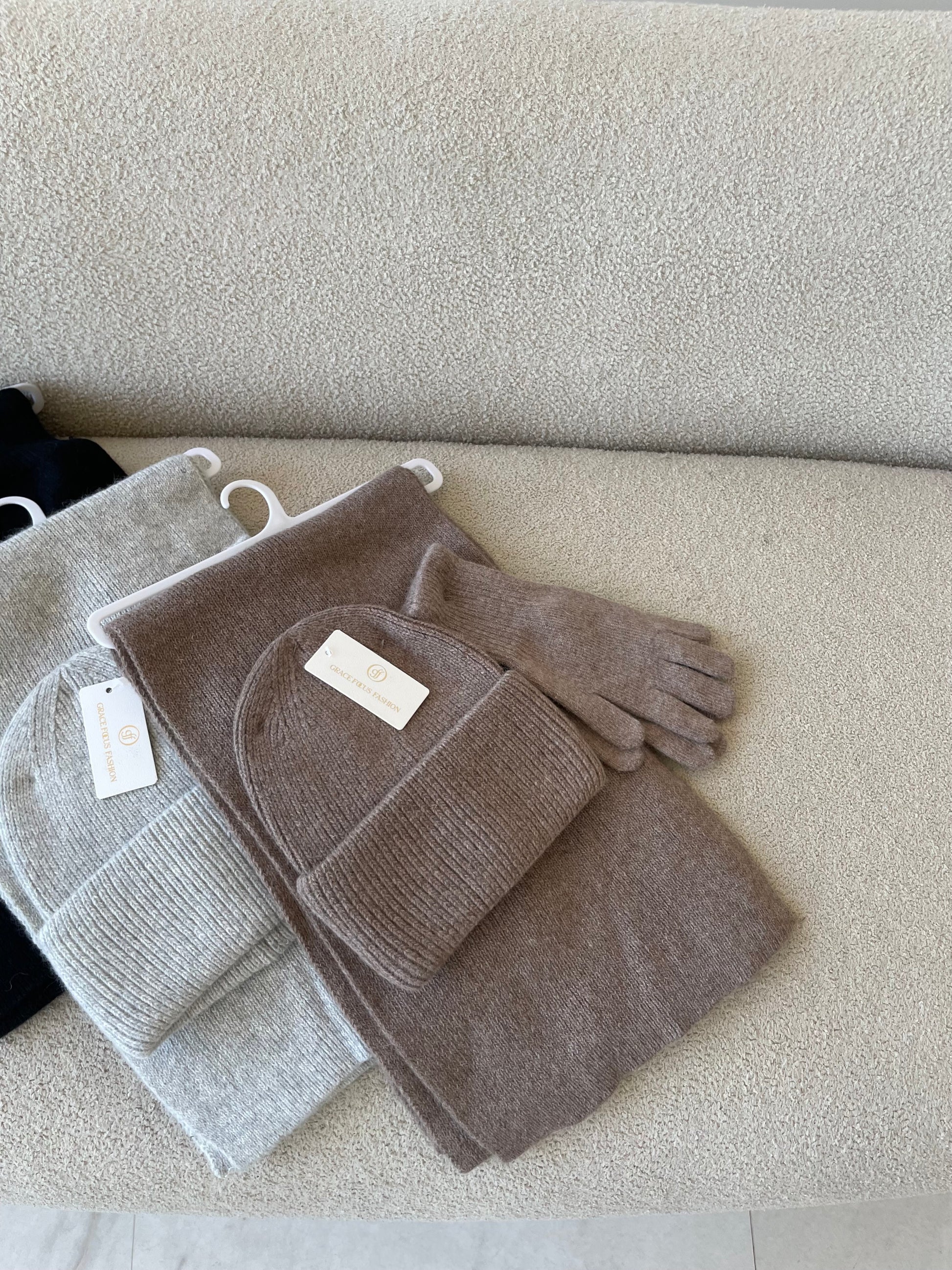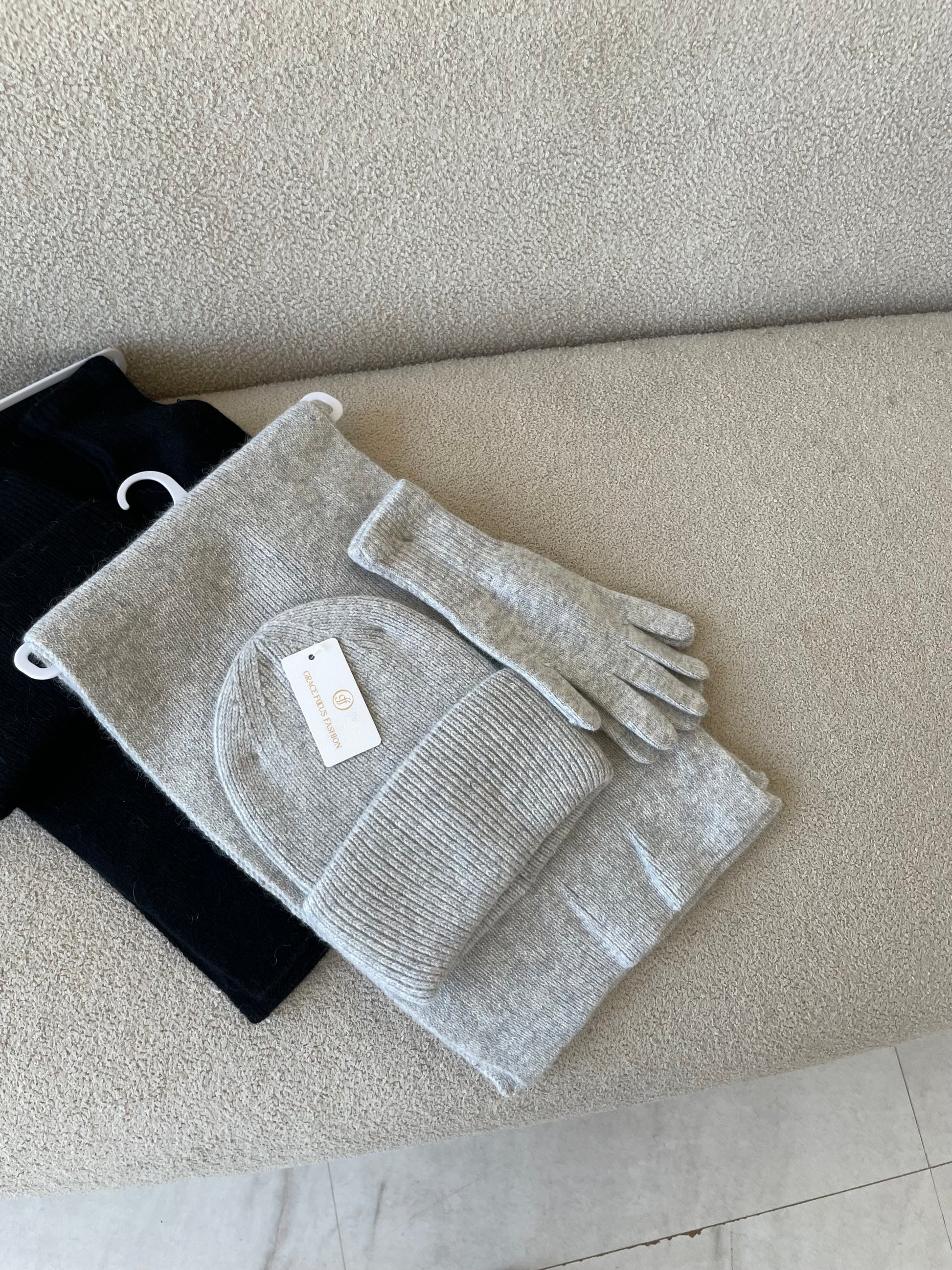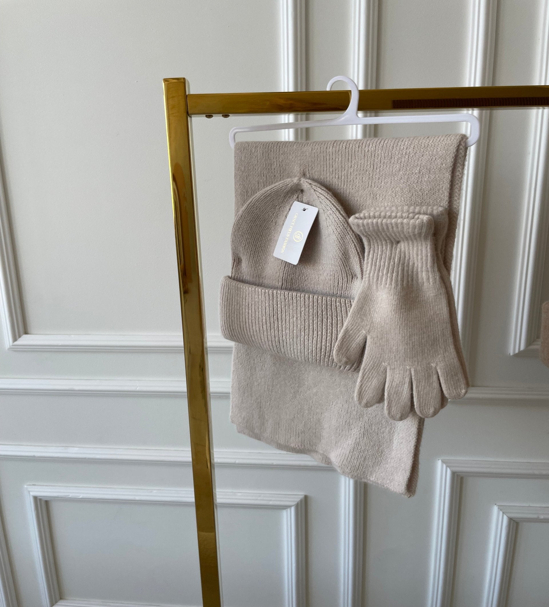 - Išmatavimai: šaliko ilgis 100cm, plotis 28cm. Kepurės aukštis 25cm, plotis 23cm. Pirštinių ilgis 27cm, plotis 11cm.