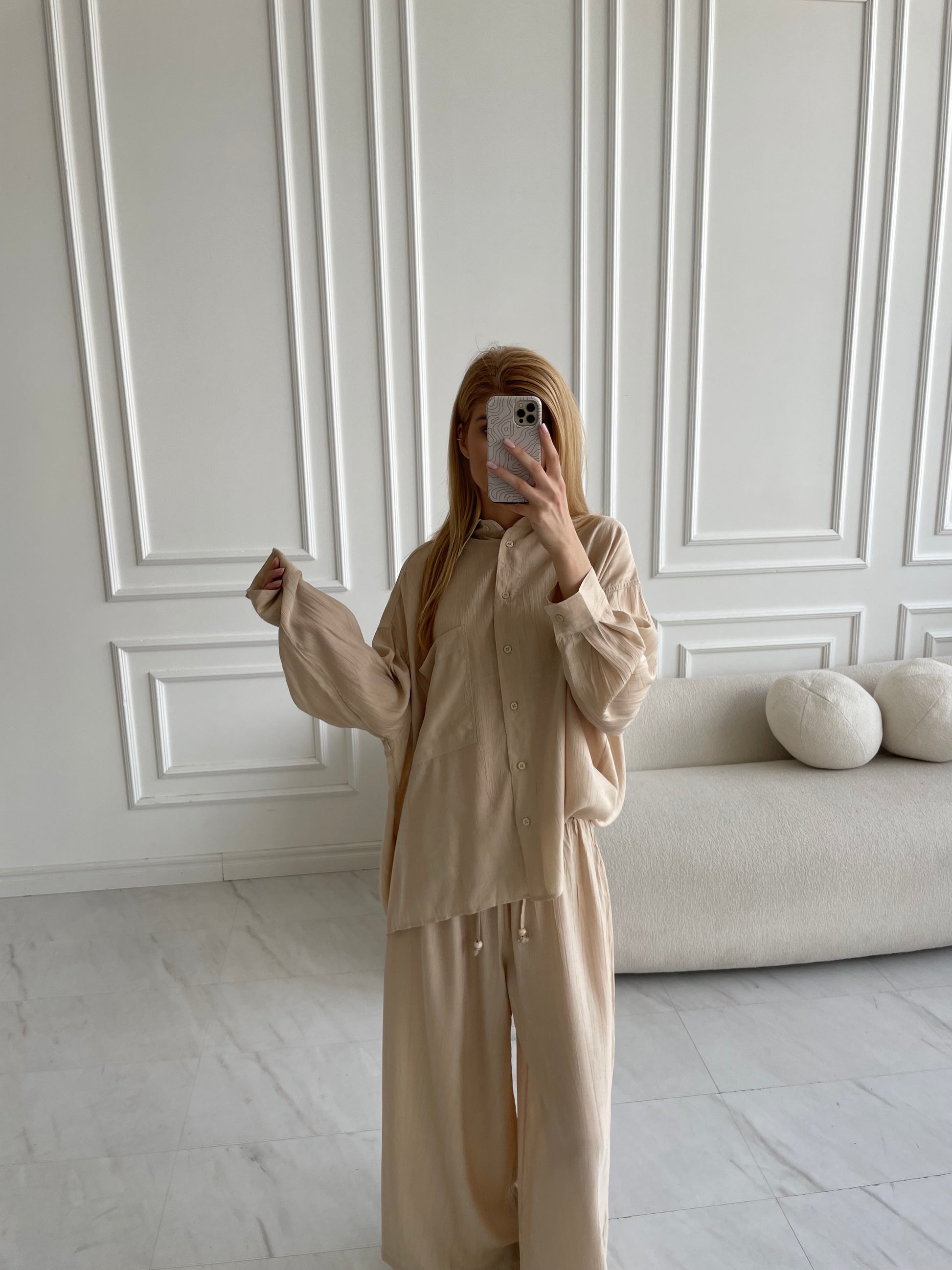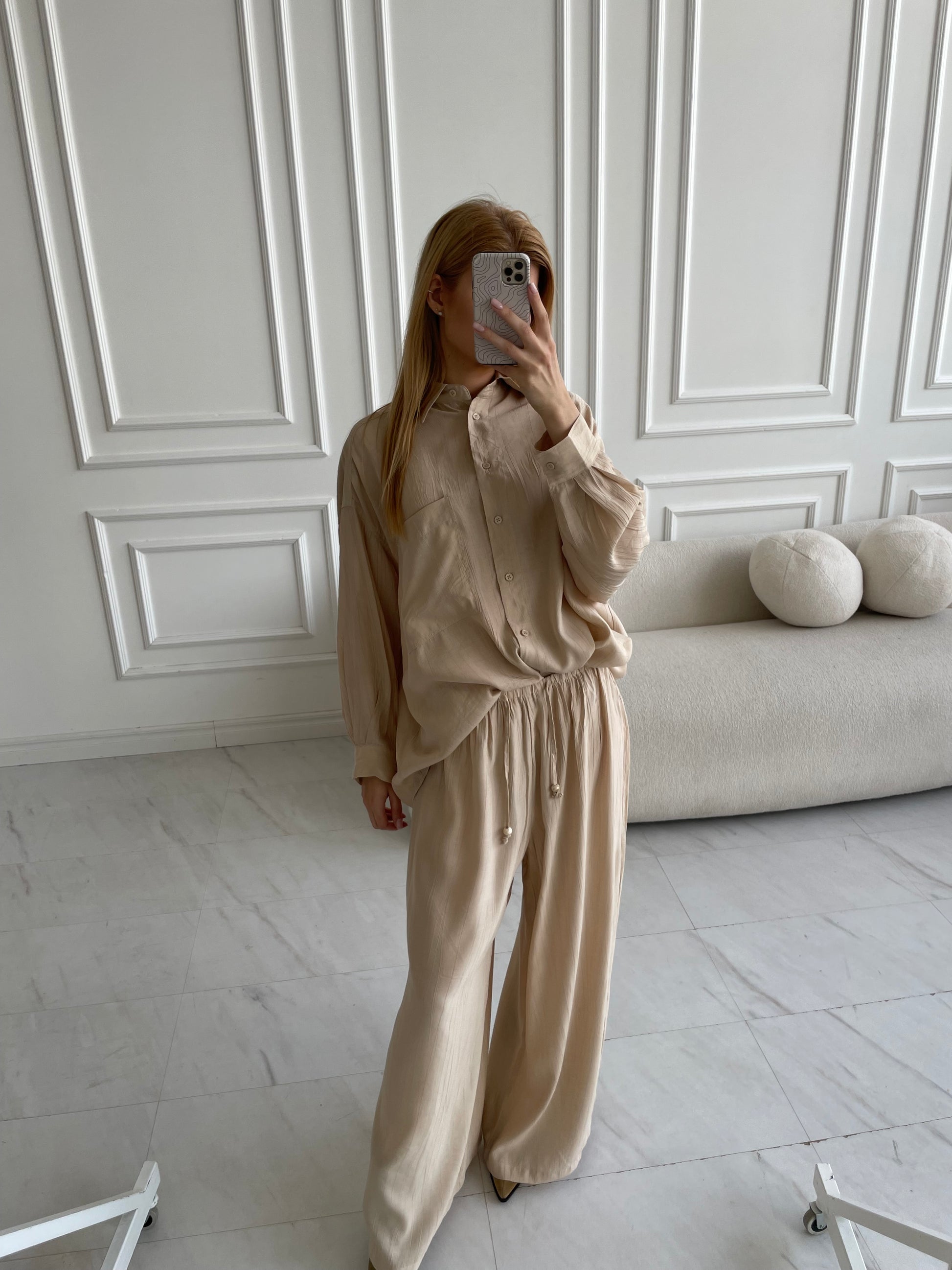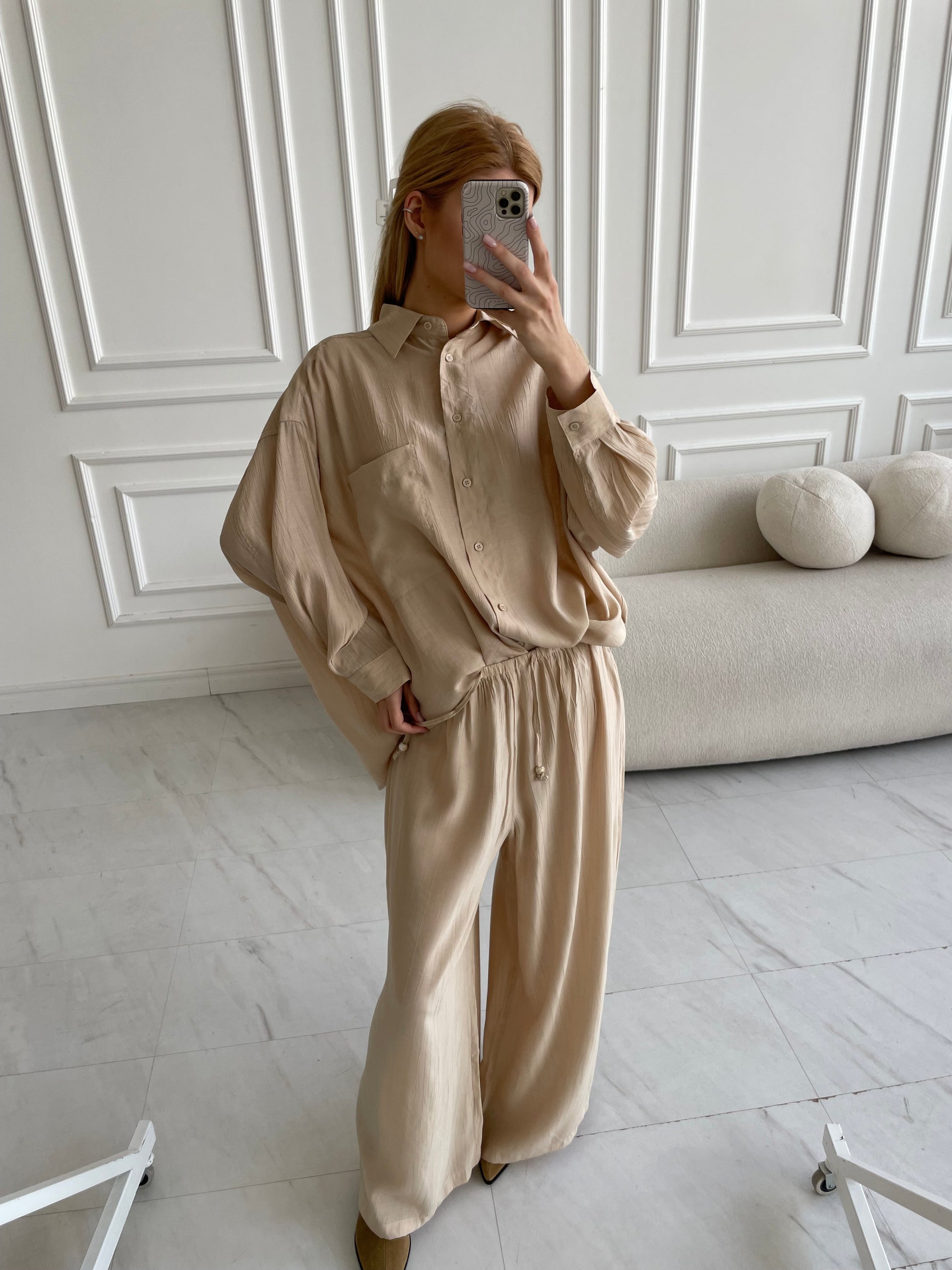 - Išmatavimai: marškinių ilgis priekyje 67cm, gale - 75cm, Plotis tarp pažastų 76cm. Kelnių ilgis 102cm, liemuo 35cm, tempiasi iki 45cm. Klubai 75cm.